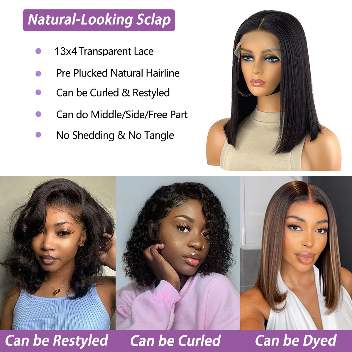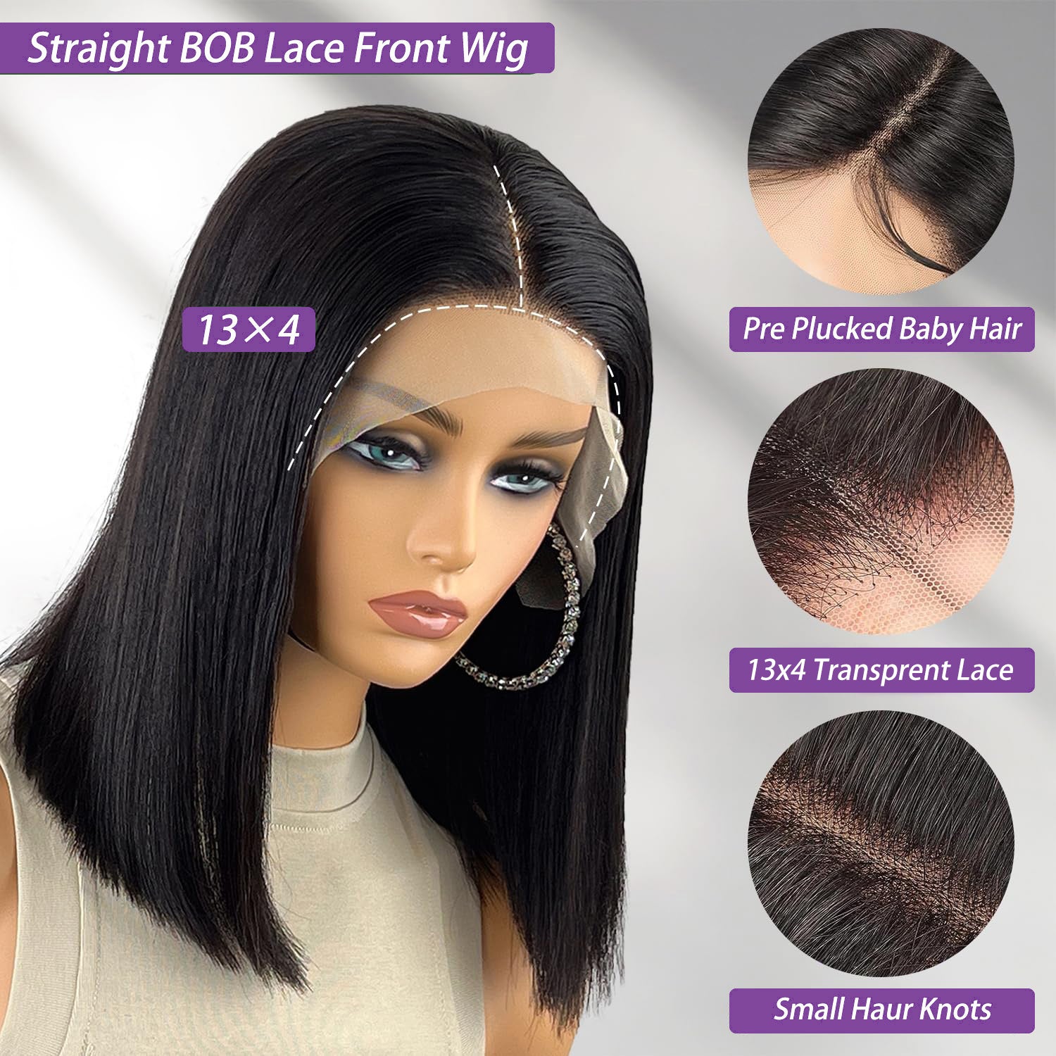 13x4 Bob Wig Straight Style